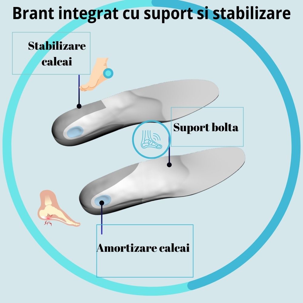 - Suport de Boltă (Arch Support): Menține curbura naturală a piciorului, prevenind prăbușirea boltei plantare în timpul mersului prelungit.