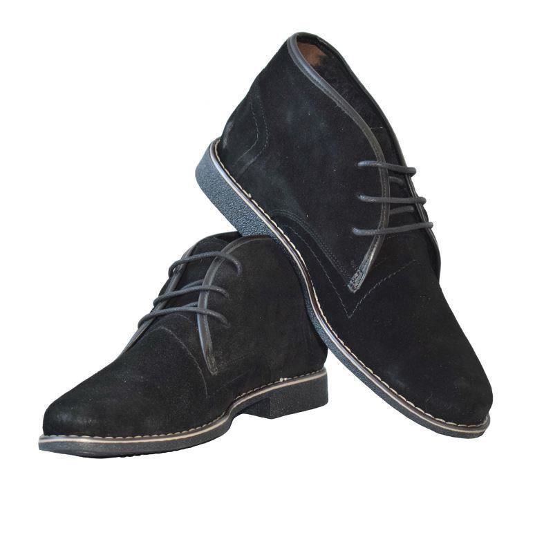Ghete negre barbatesti din piele intoarsa naturala, imblanite, confortabile si cu talpa antiderapanta.