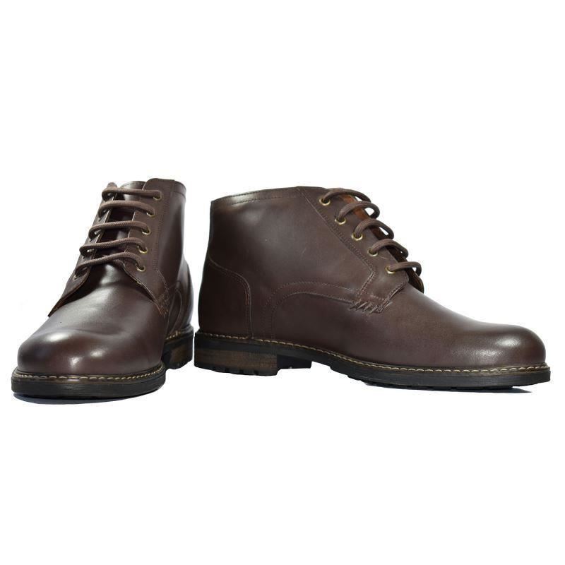 Ghete maro inchis barbatesti din piele naturala, imblanite, confortabile si cu talpa antiderapanta.