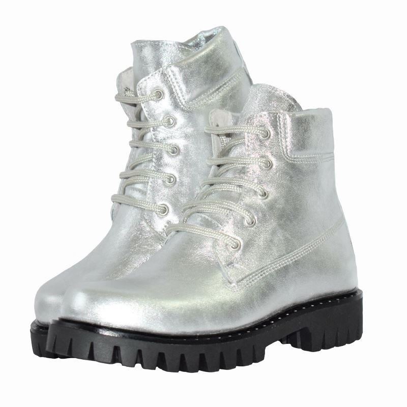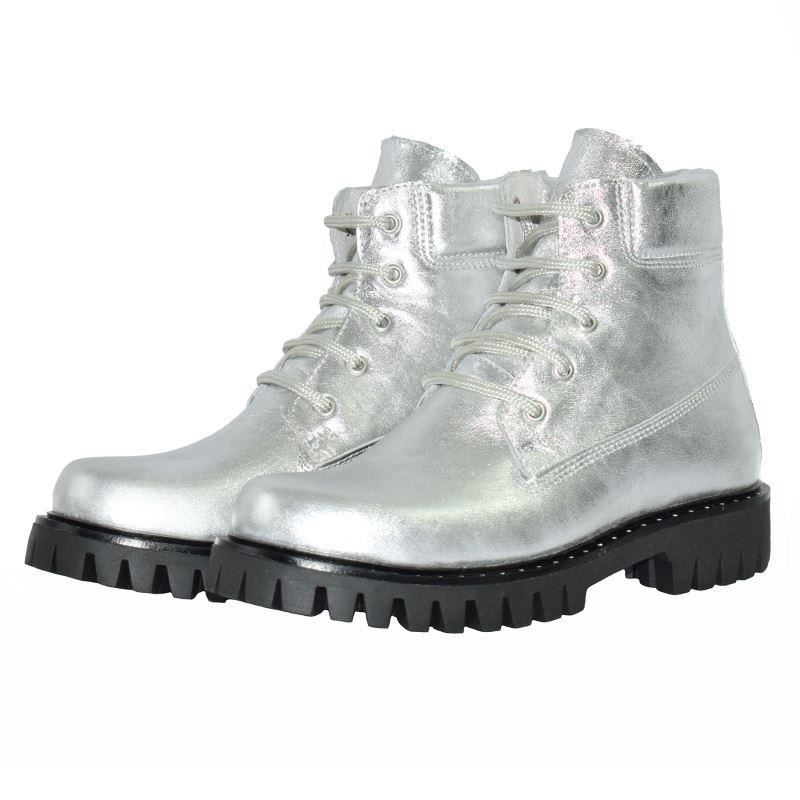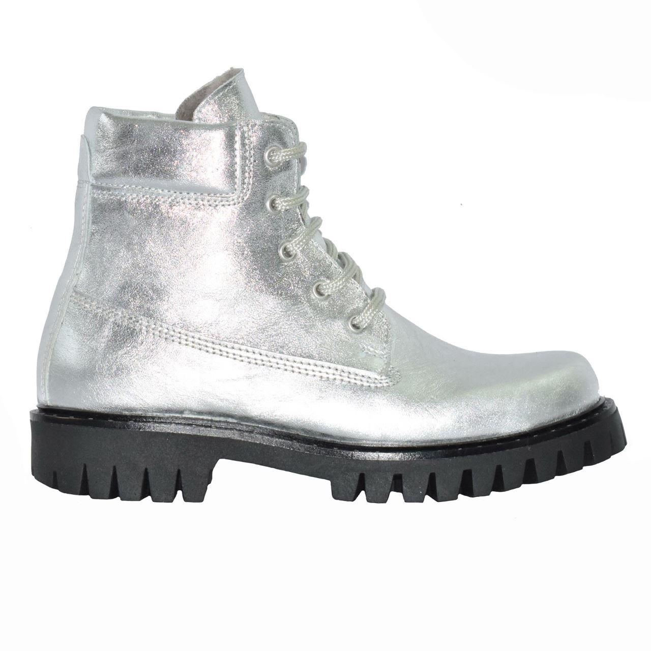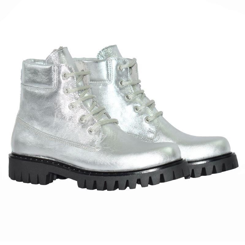 Ghete argintii de dama din piele naturala, imblanite, confortabile si cu talpa antiderapanta.