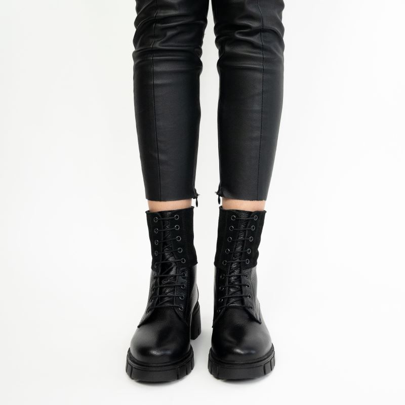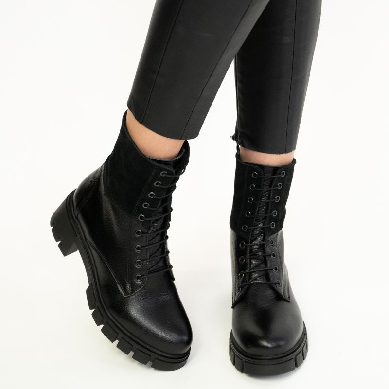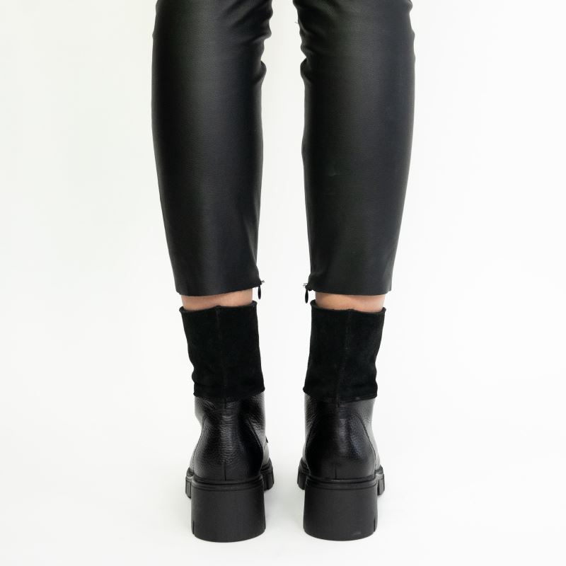 Ghete Piele Naturala Dama negre combinatie cu piele intoarsa.Imblanite.