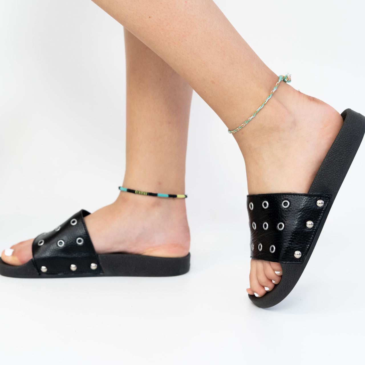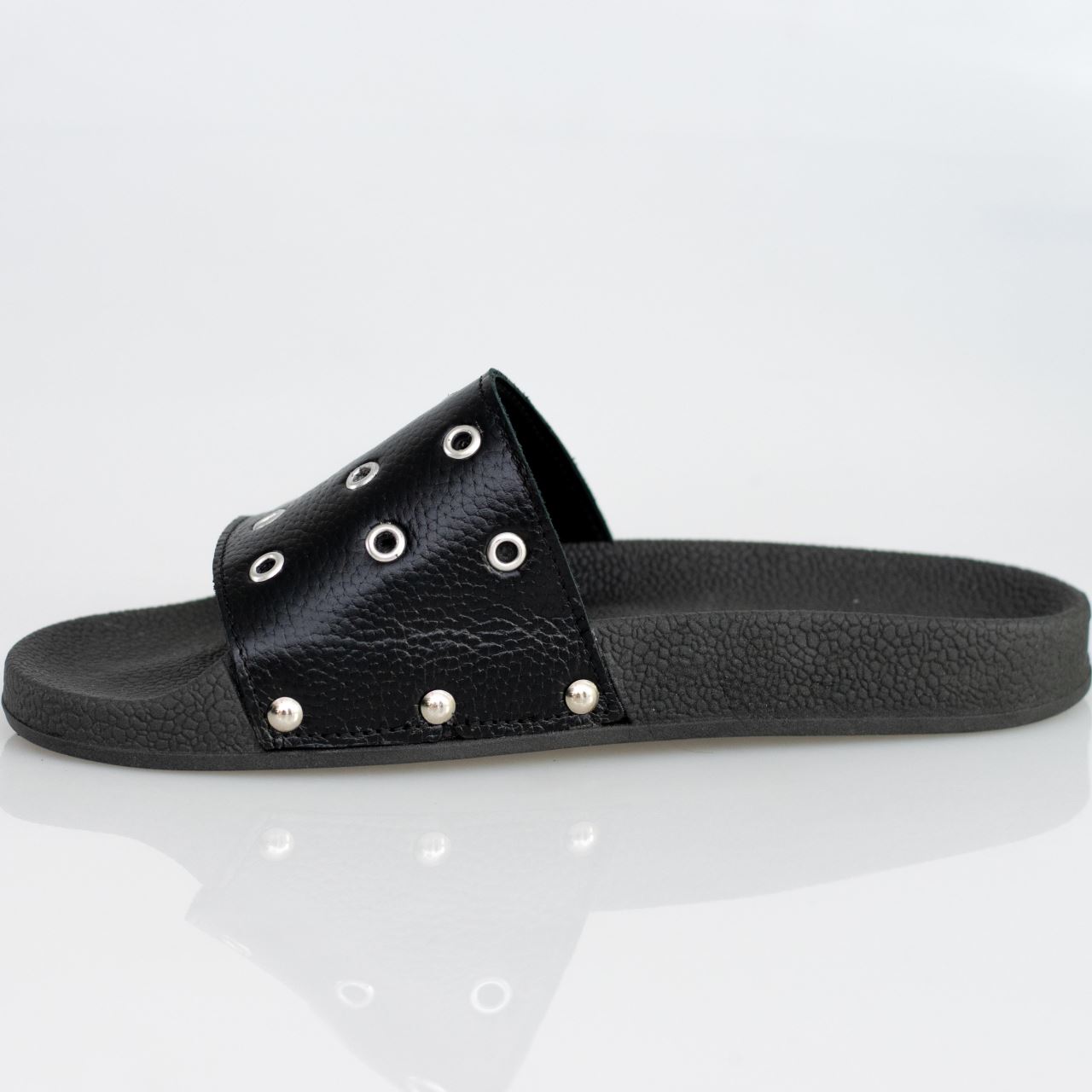 Papuci de dama din piele  naturala accesorizati