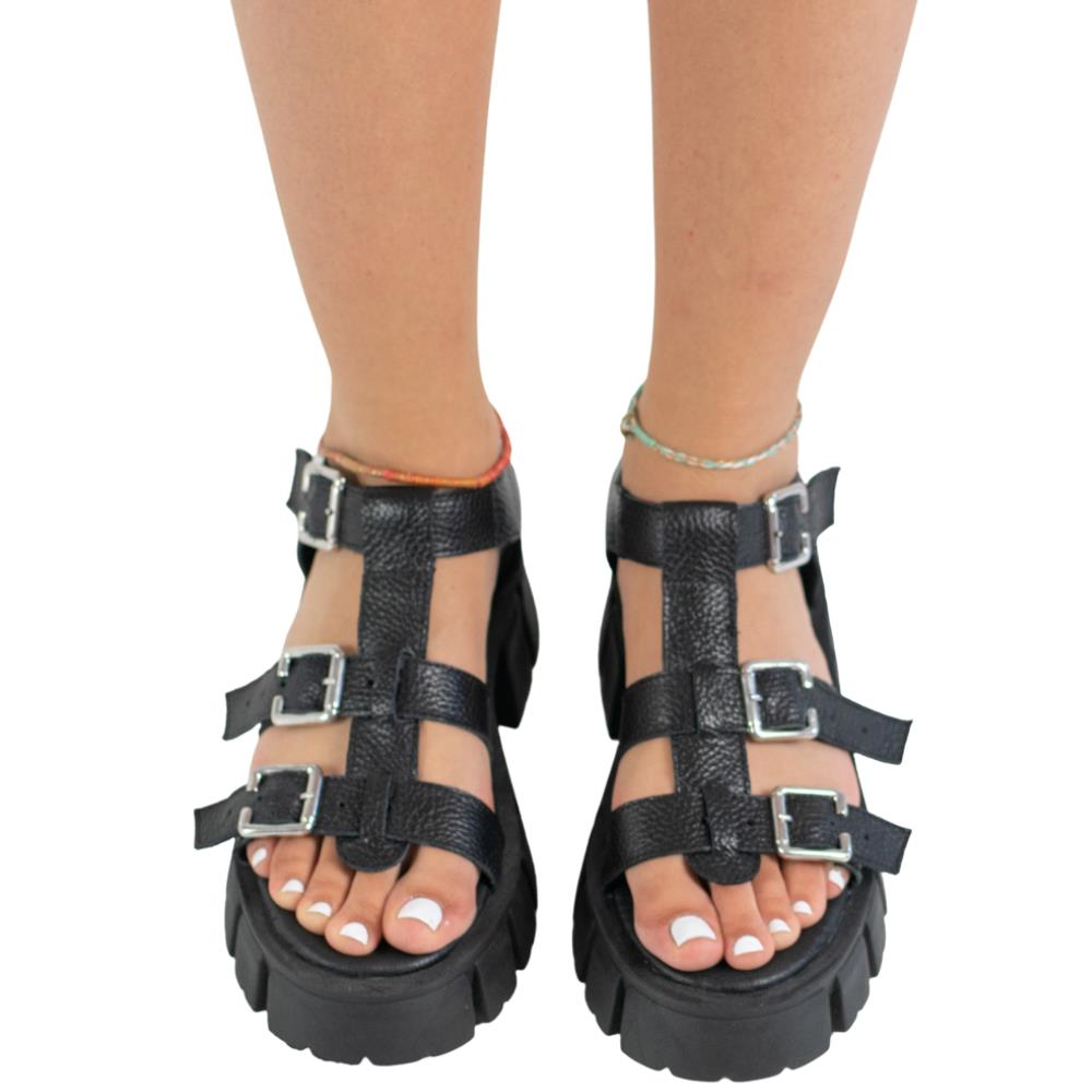 Sandale cu talpa groasa de dama din piele naturala:Brantul este acoperit cu un strat de burete gros care asigura confort sporit.